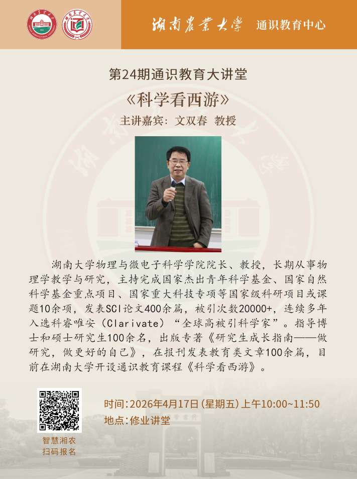 【活动预告】湖南农业大学第二十四期通识教育大讲堂